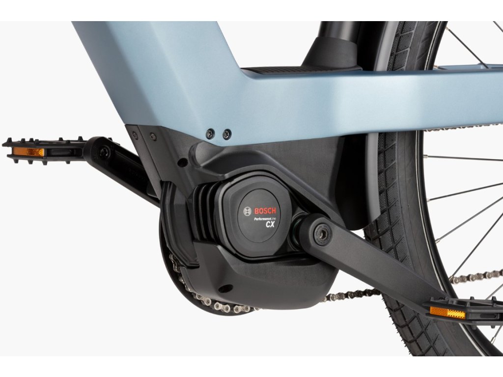 Elektrický pohon tvoří Bosch Smart System motor s točivým momentem až 100 Nm, který ti poskytne spolehlivou a hladkou asistenci při rozjezdech i do kopce, ať už vezeš batoh, nákup nebo míříš na víkendový výlet. Integrace systému do rámu navíc zlepšuje celkovou stabilitu a pocit z jízdy.
