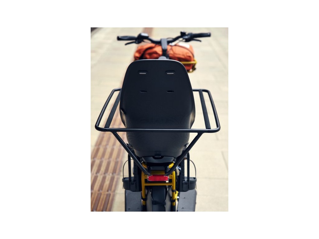 Na zadním nosiči vybaveném polstrováním a ochranným rámem mohou pohodlně sedět až dvě děti, pro menší děti snadno přímo do rámu instalujete dětskou cyklo sedačku.