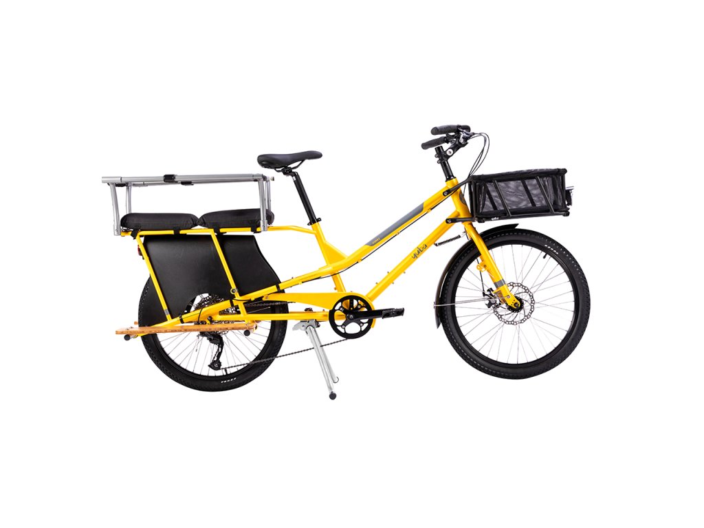Yuba Kombi Family Edition je praktické cargo kolo pro každou rodinu, kompaktní náklaďák na dvou kolech, který se vejde i do výtahu, zachrání víkendové nákupy a ještě vám vykouzlí úsměv na tváři. V ceně modelu Kombi Family Edition je vše, co potřebujete pro přepravu svých dětí na zadním nosiči - platformy na nohy Kombi Sideboards, ochranný rám Monkey Bars, rovná deska na nosič Kombi Deck a 2x polstrování Mini Soft Spot.